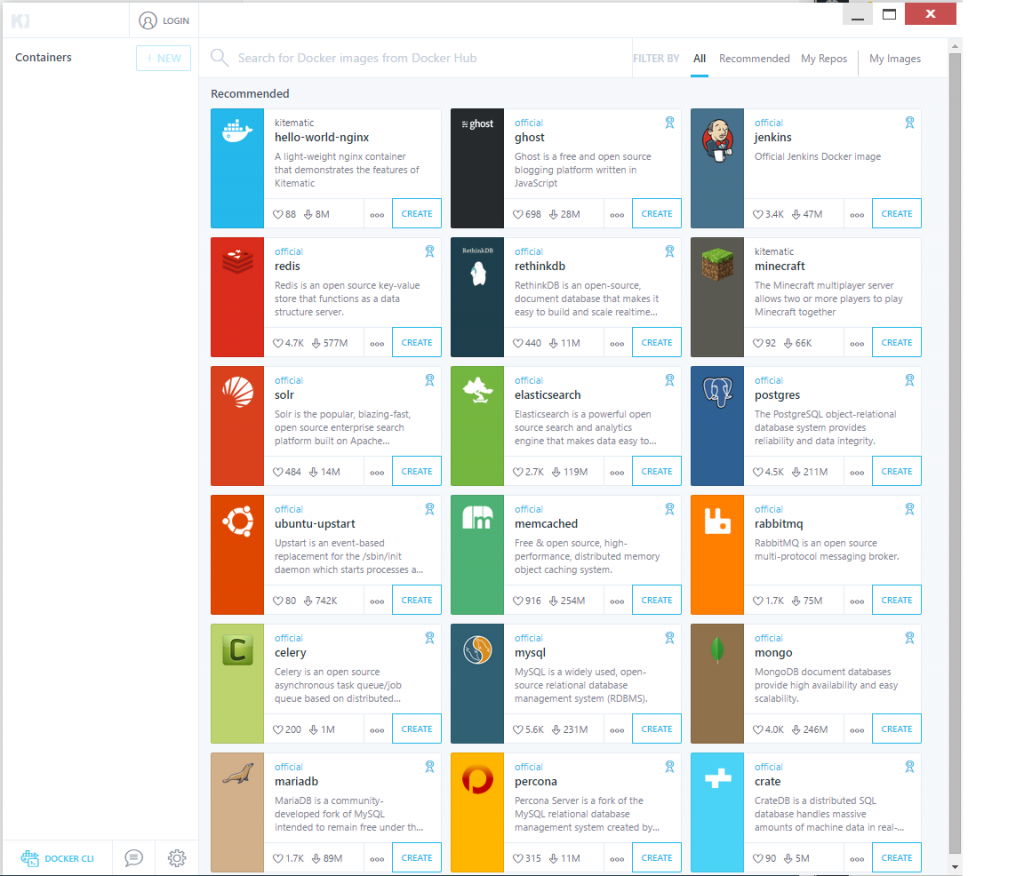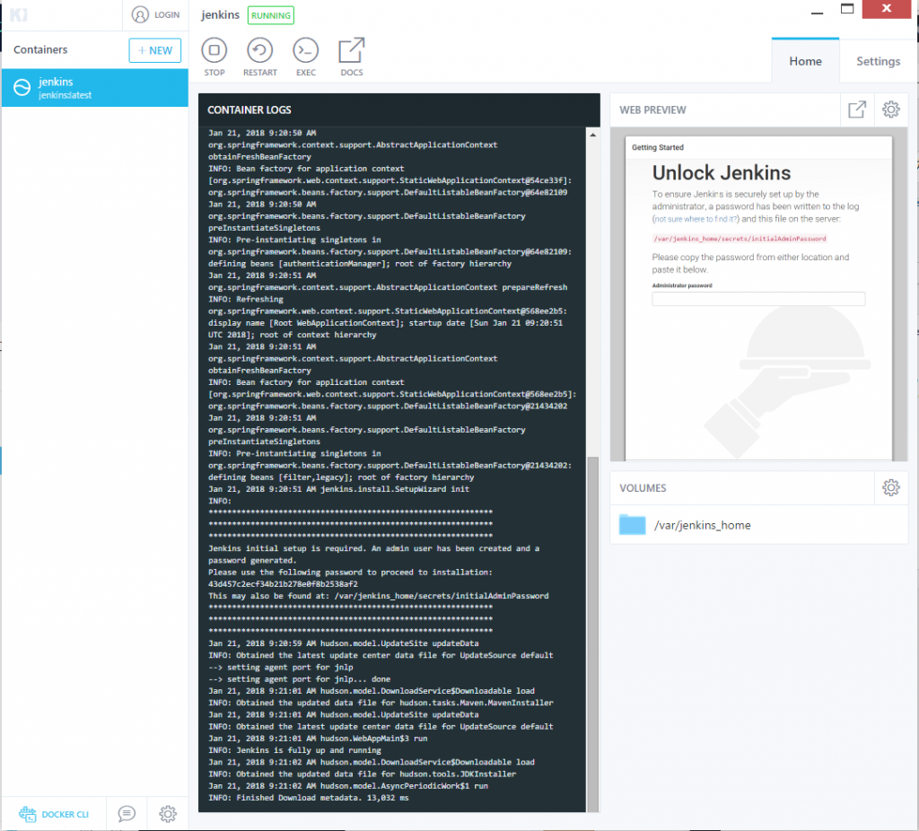Docker - Kitematic으로부터 Jenkins 이미지를 클릭하여 Jenkins를 쉽게 설치할 수 있다.