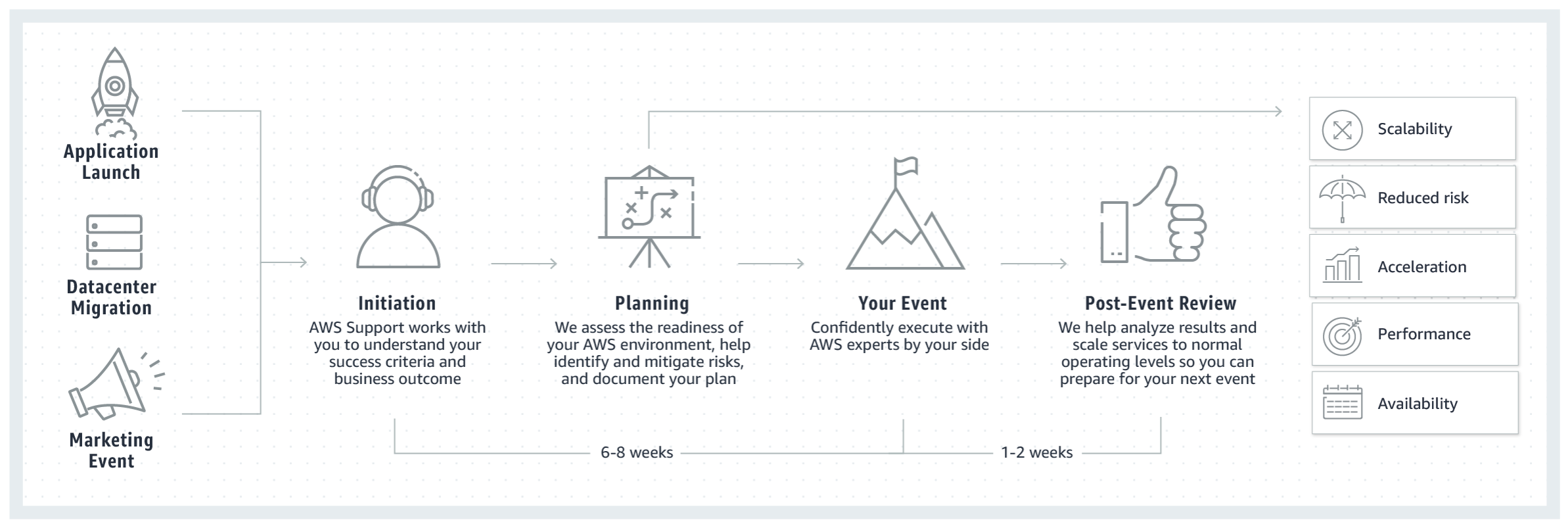 즉, AWS에서도 온라인 이벤트를 위한 컨시어지 서비스를 제공한다. 업무는 대략 아래와 같은 프로세스를 따른다.