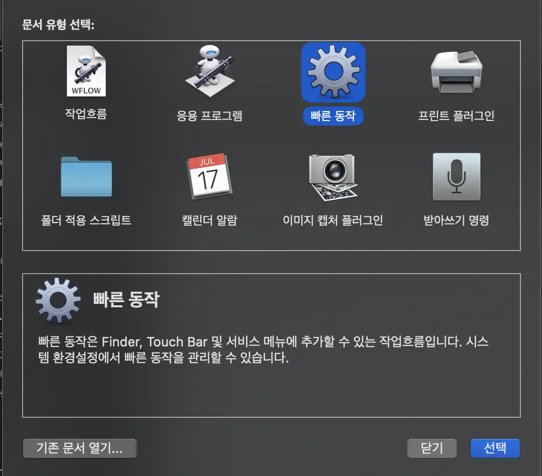 Automator를 실행하고, 파일>신규를 선택합니다.