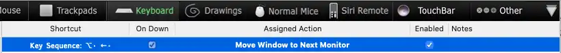 BTT는 사용자 정의 단축키, 마우스, 트랙패드, 터치바 등등의 커스텀 펑션을 정의할 수 있게 해주는 만능 툴이다. 대부분의 맥 사용자가 이 툴을 이미 사용하고 있을 것이다. BTT를 사용해서도, 듀얼 혹은 멀티모니터간 창이동을 지정할 수 있다.