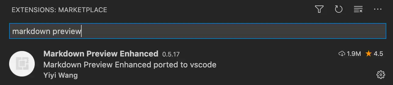마찬가지로, Shift + Command + X키를 눌러서 extension을 설치한다. 이번에 설치할 것은 Markdown Preview Enhanced이다. 즉, 마크다운 문서를 미리보기 할 수 있도록 도와준다.