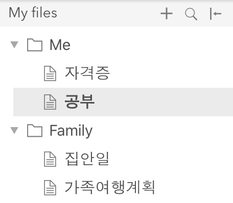 Workflowy는 하나의 디렉토리만 제공한다. 따라서, 축적하는 데이터가 많아지면 분류를 하기가 어려워진다. 그러나 Dynalist는 업무/공부/집/개인 등과 같이 별도의 폴더/문서를 분리하여 작성할 수 있기 때문에 데이터가 커지더라도 시각적으로 분류하는데 좀더 용이하다.