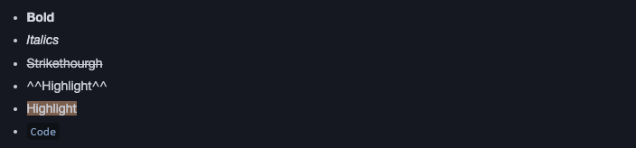만 동작한다. 따라서, logseq와 obsidian 두 개의 툴을 혼용한다면 문자열 강조시에는 ==내용==의 표기법을 쓰자. 위의 글자 꾸미기 예제를 참고하자.
