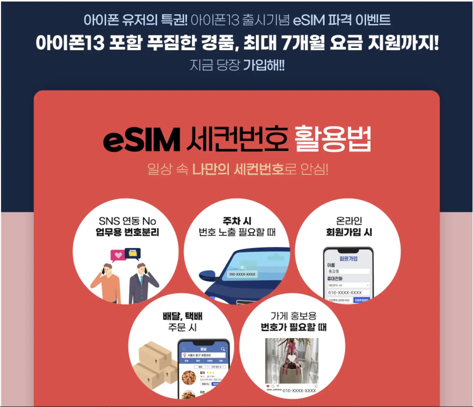 esim 표준, esim 1G, esim 3G 등의 옵션에 대해 작성 시점 기준으로 프로모션 중입니다. 요즘 메인 번호는 보통 데이터 용량도 크기 때문에 메인 번호
