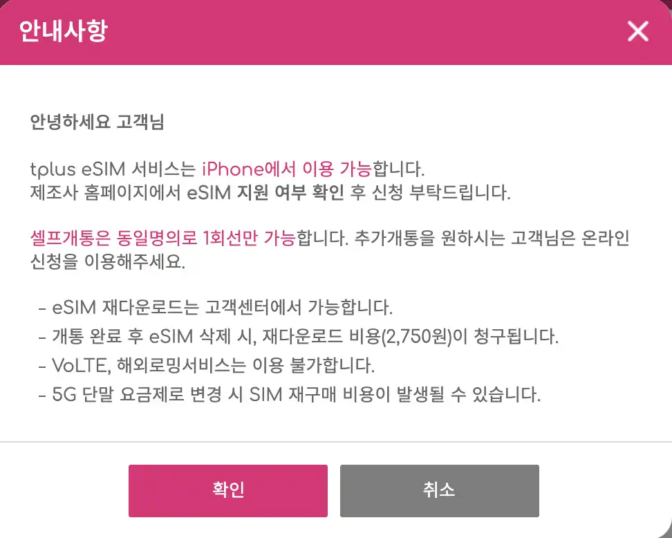 모든 기기가 esim을 지원하는 것은 아니며, 티플러스 모바일 홈페이지에서 소개하는 바와 같이 위의 기종들에서만 티플러스 esim을 사용할 수 있습니다.