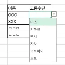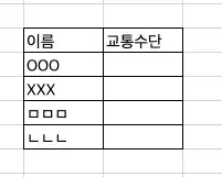 예를 들어, 어느 장소로 워크샵을 간다고 가정하고 팀원들의 이동수단(교통수단)을 조사한다고 해보자.
