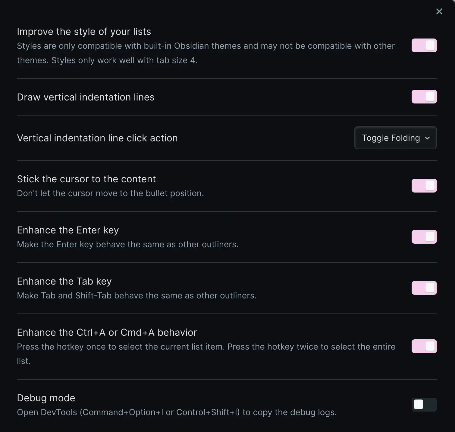 만약, obsidian에서 bullet 형태의 글을 자주 쓴다면 유용한 플러그인이 있다.