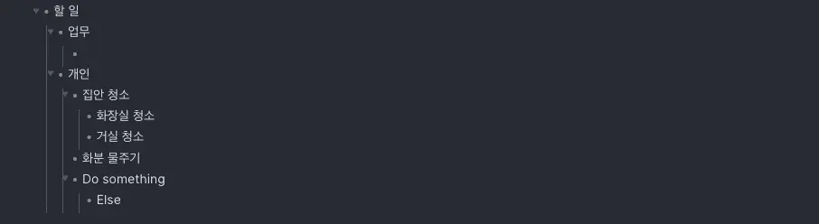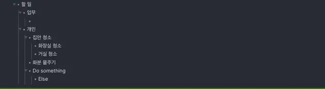 생각을 정리하는 앱으로 유용한 workflowy와 dynalist처럼 obsidian에서도 bullet 형태로 글의 아웃라인을 잡을 수 있다.