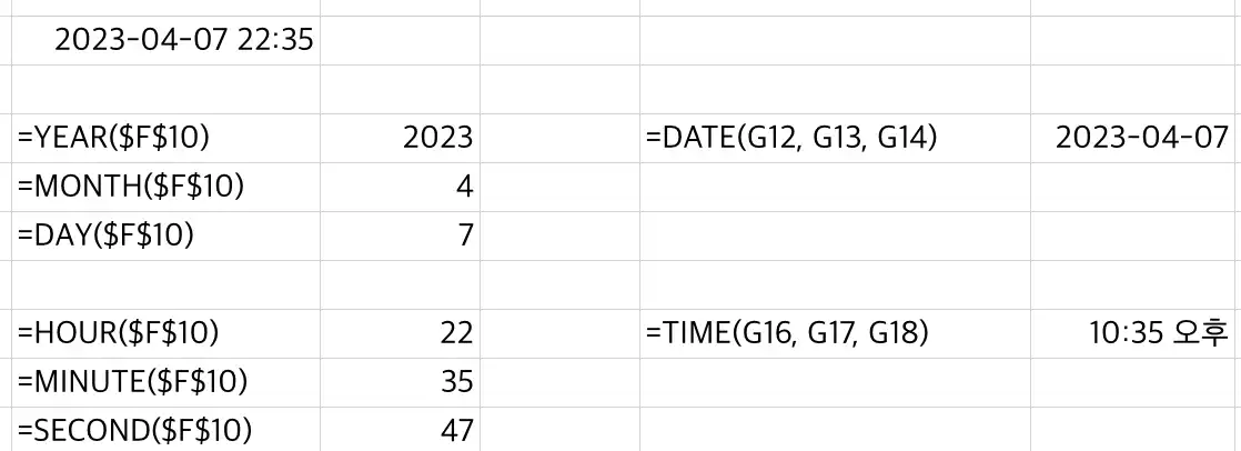 함수를 써서, 각각 연/월/일/시/분/초 값을 추출할 수 있다.