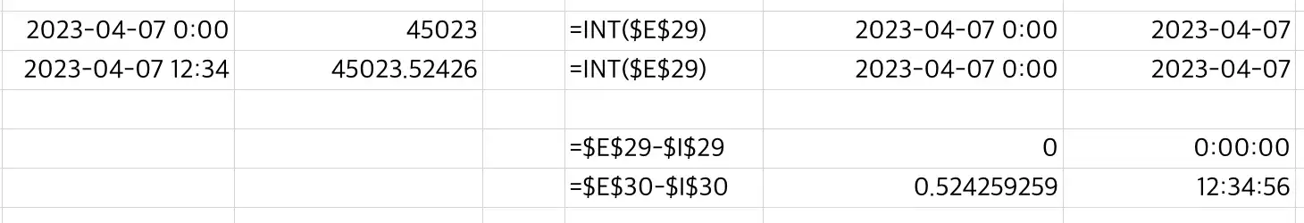 원래 시간에서 정수값만 뺀 후, 남은 값을 강제로 시간 형식으로 변환하면 시간 값만 추출할 수 있다.